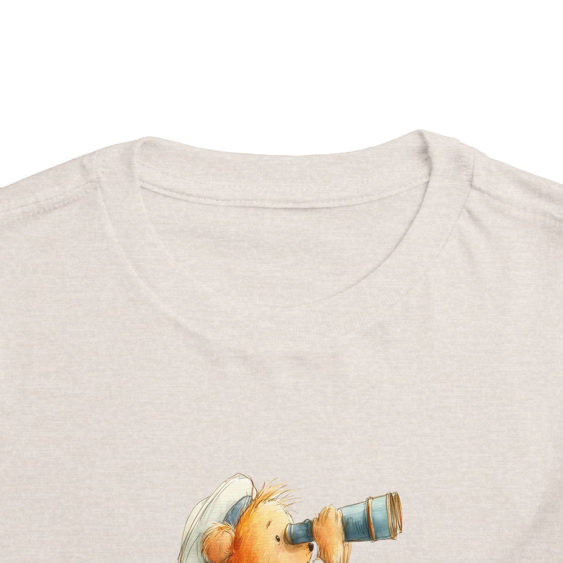 This adorable toddler t-shirt features a sweet bear illustration inspired by classic childhood adventures — sailing the seas and soaring the skies. Designed with soft watercolor tones and a gentle, storybook feel, it’s perfect for curious little explorers.