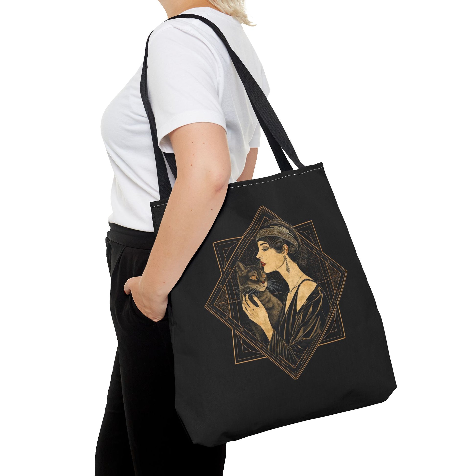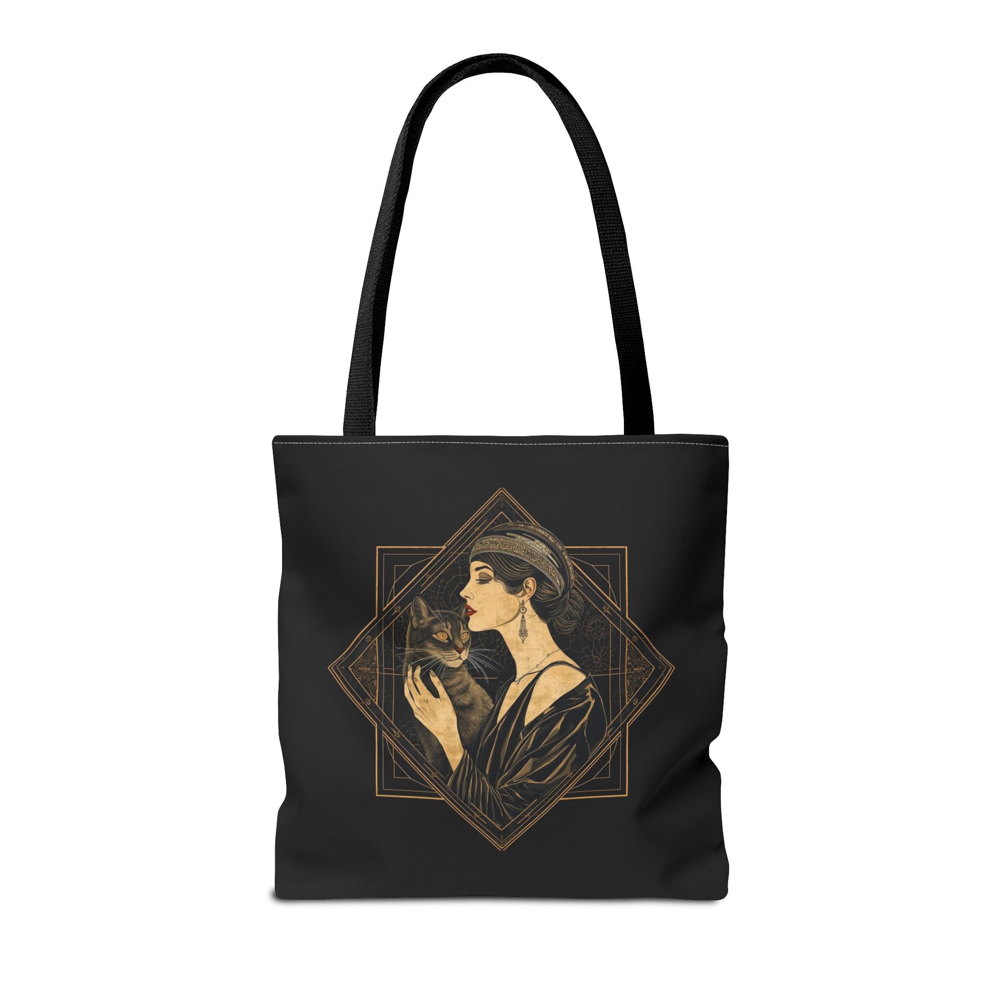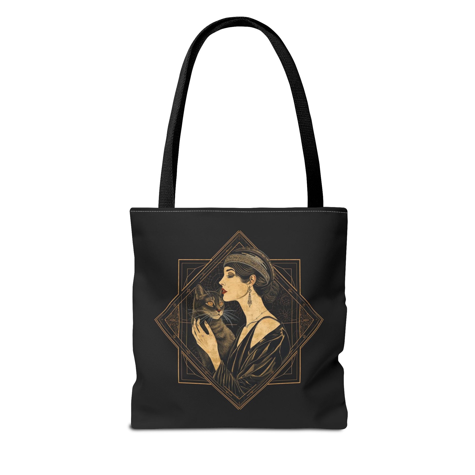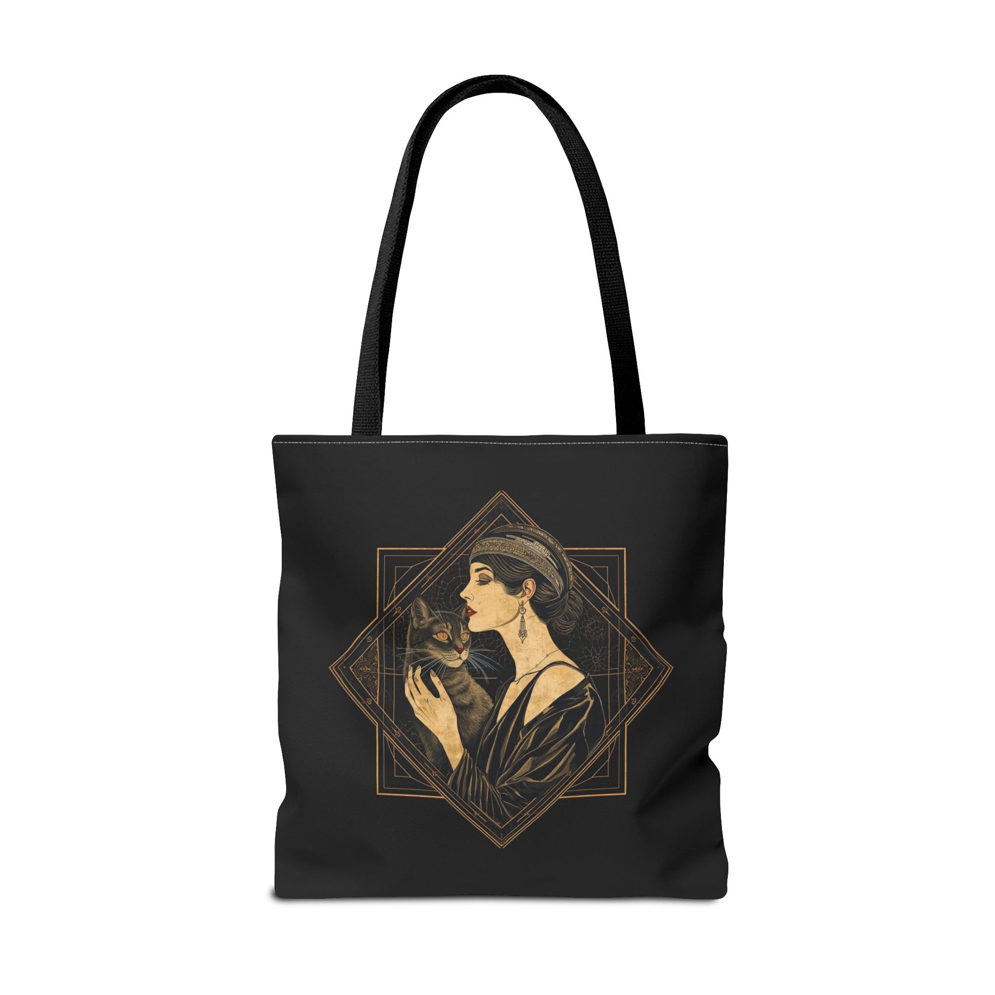 Art Deco Muse & Cat Elegant Vintage Style Cotton Canvas Tote Bag