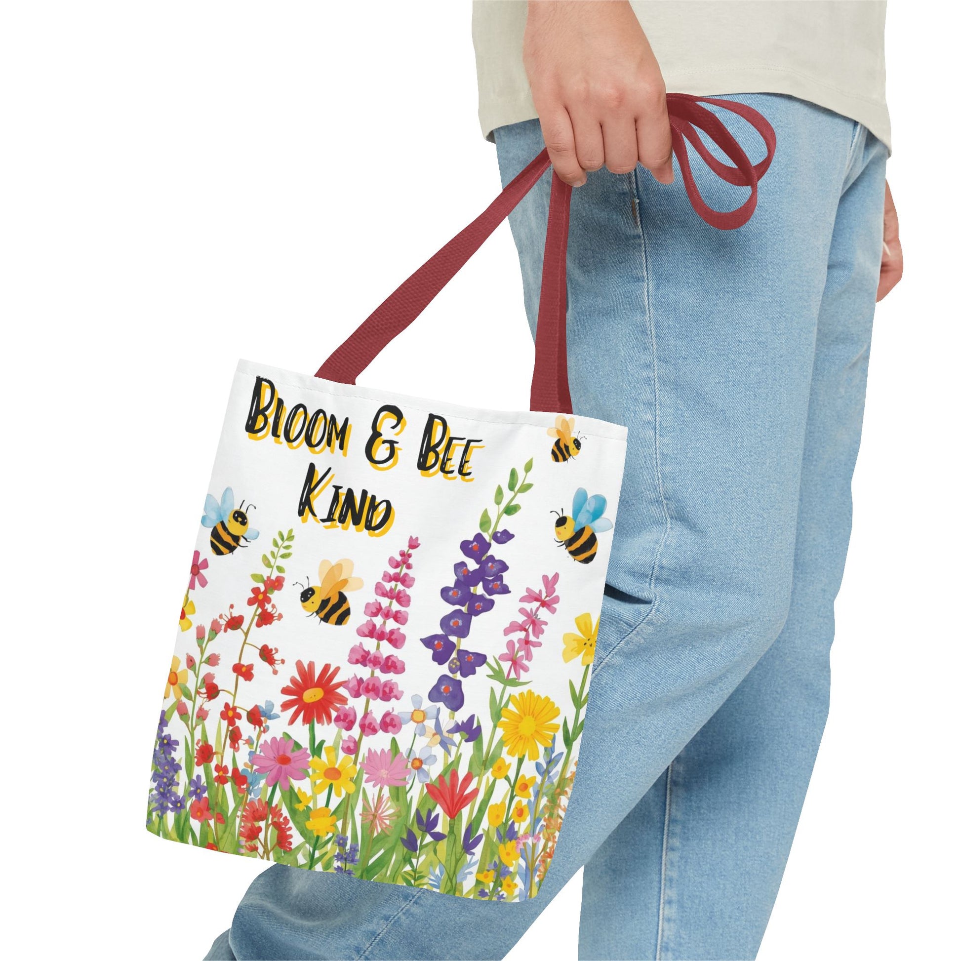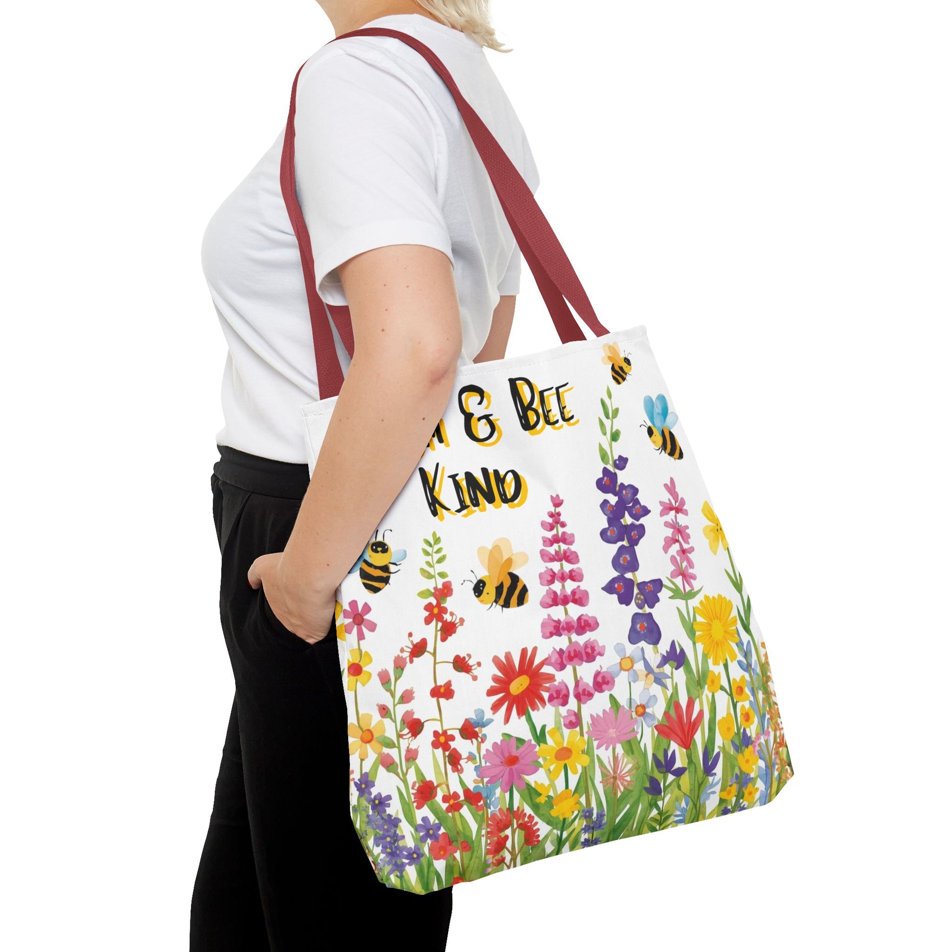 Bloom & Bee Kind Floral Bee Illustration Cotton Canvas Tote Bag