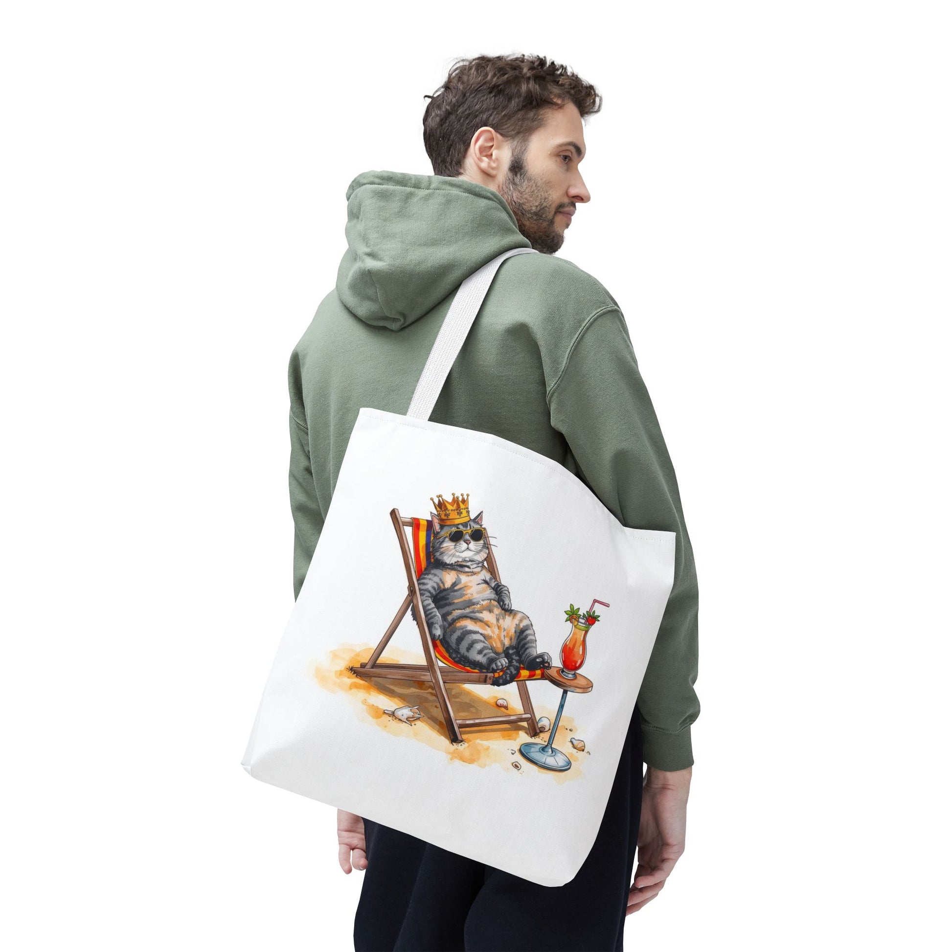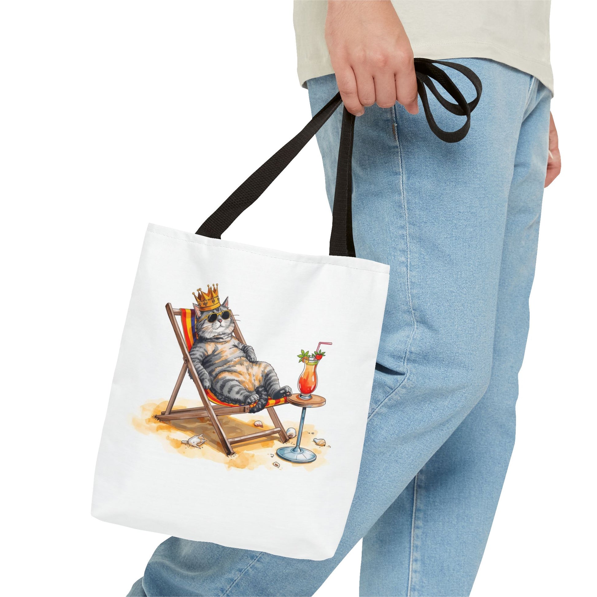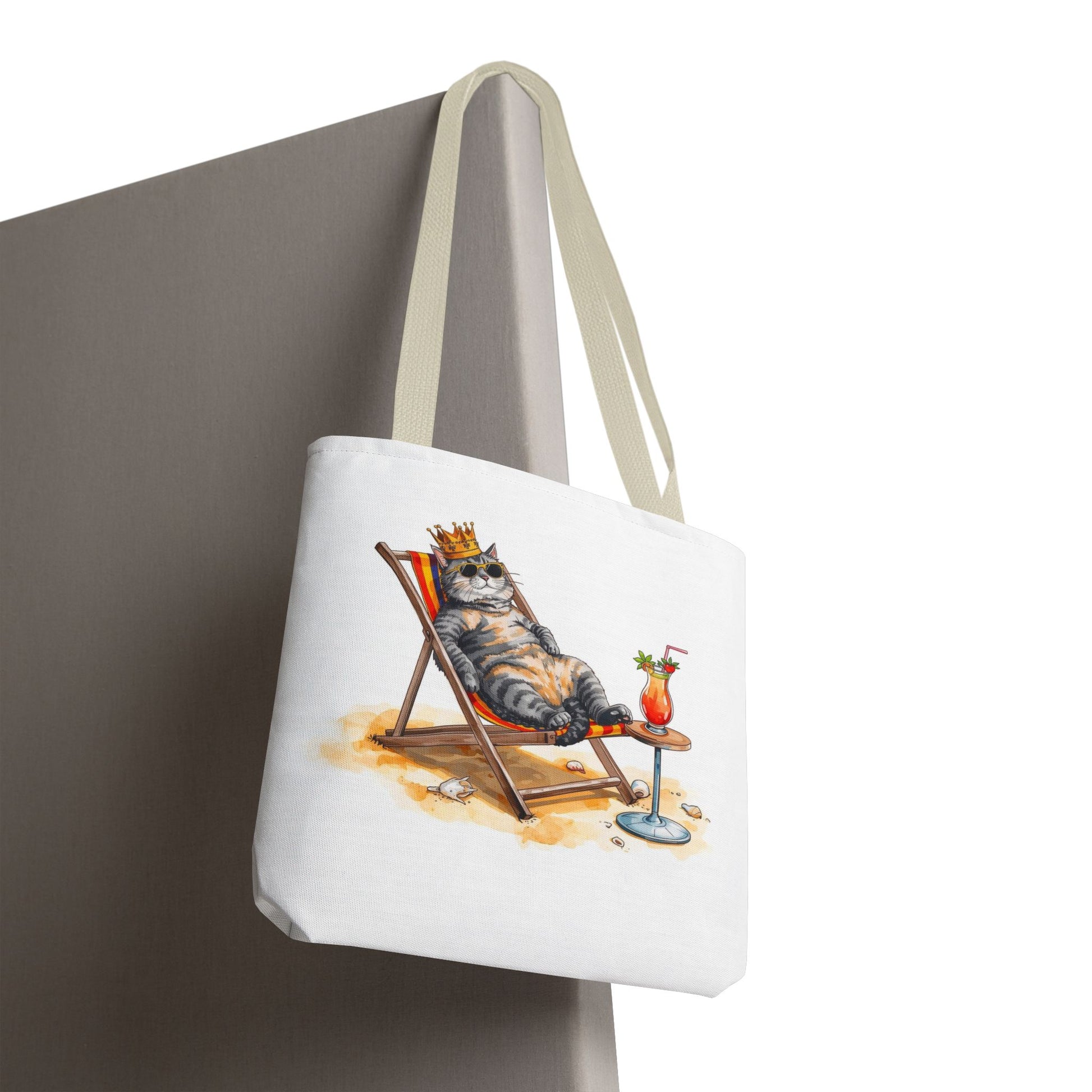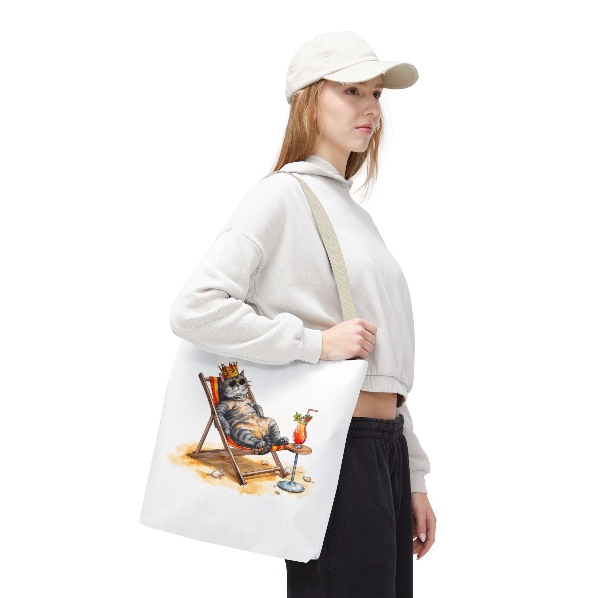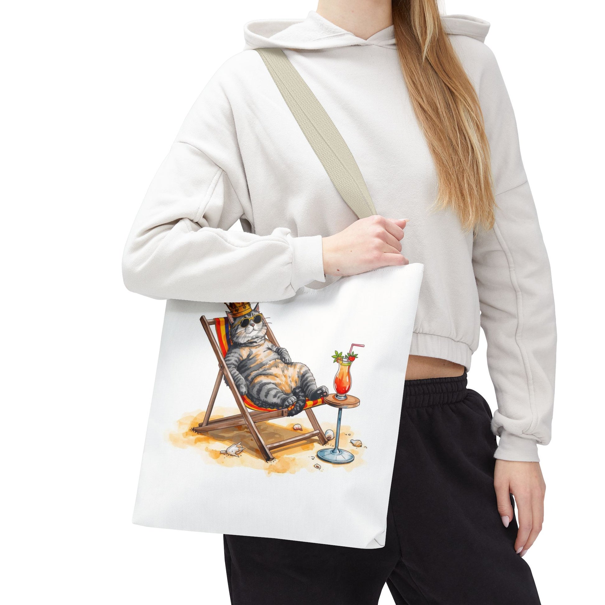 Living the Good Life Cat Playful Animal Illustration Cotton Canvas Tote Bag