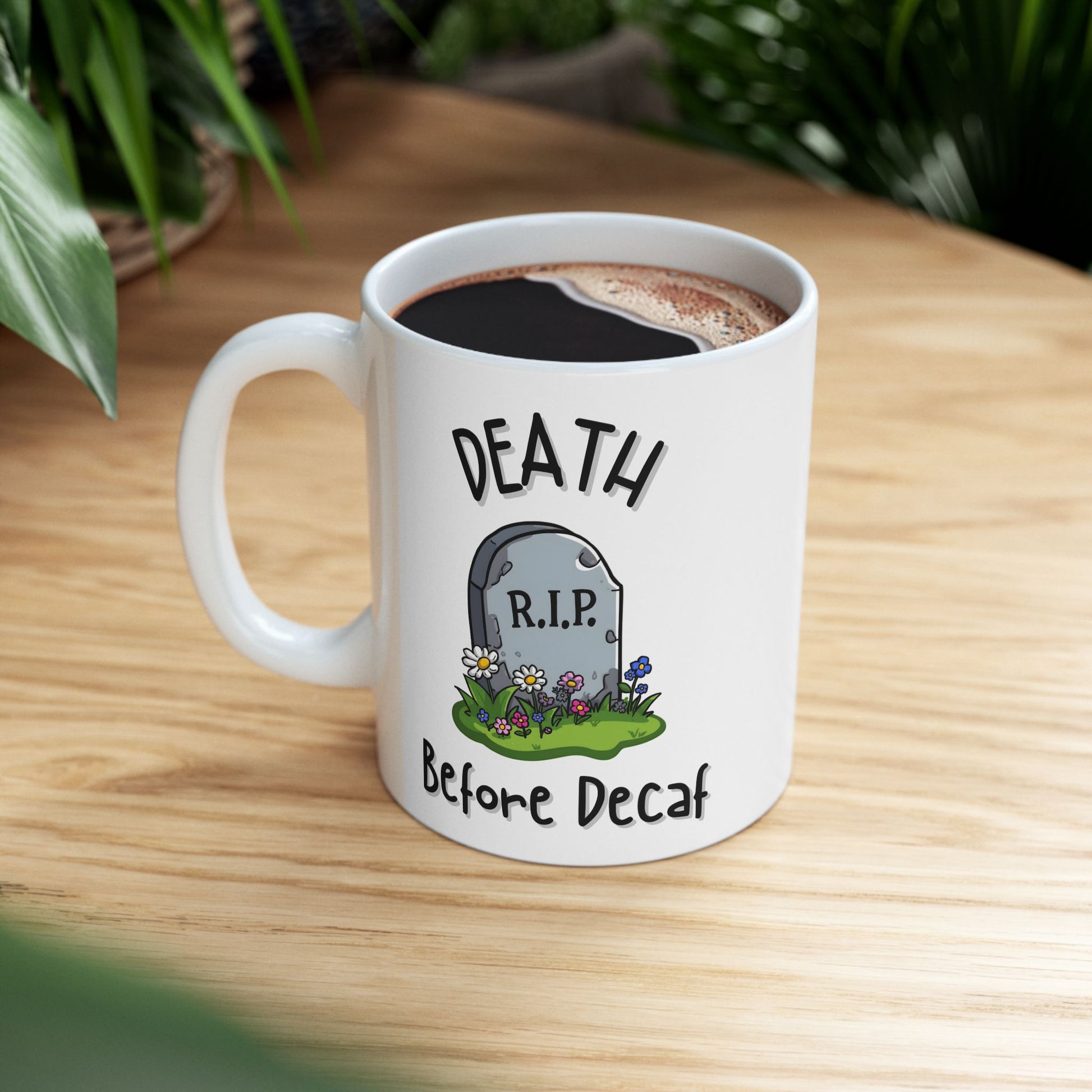 Death Before Decaf Funny Mug - Ceramic Coffee Cup (11oz, 15oz)
