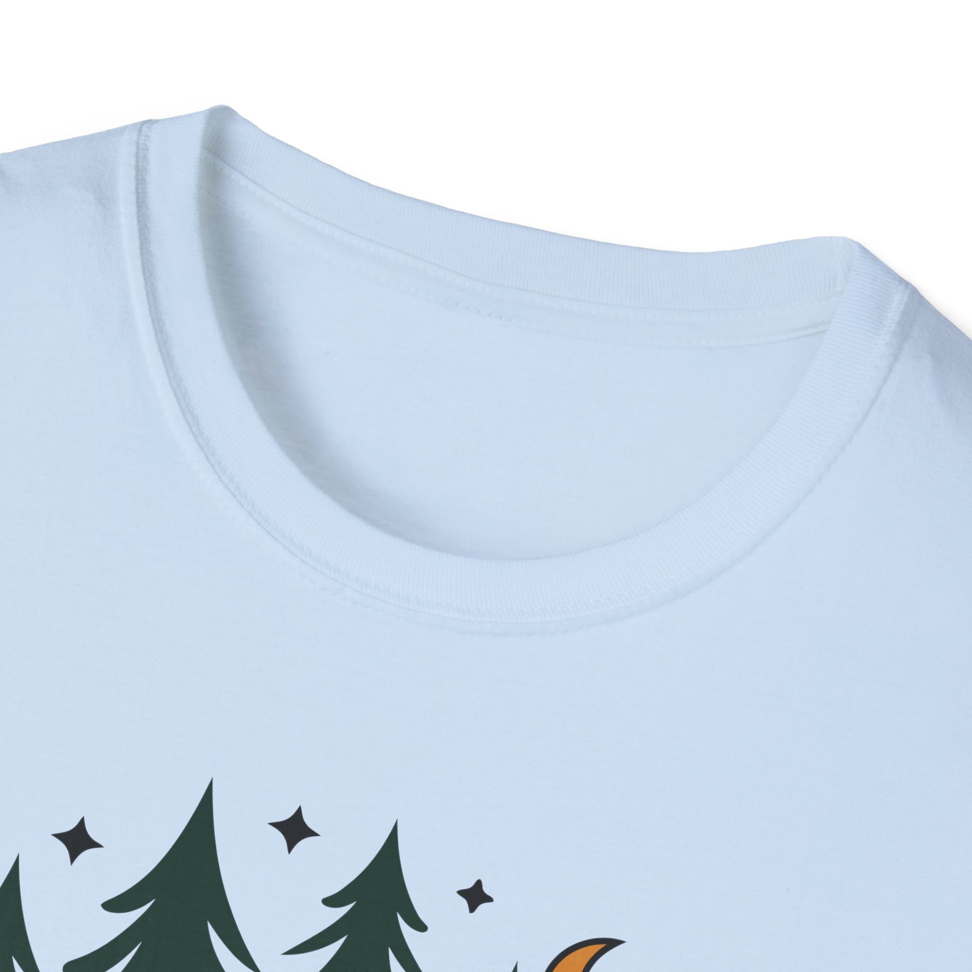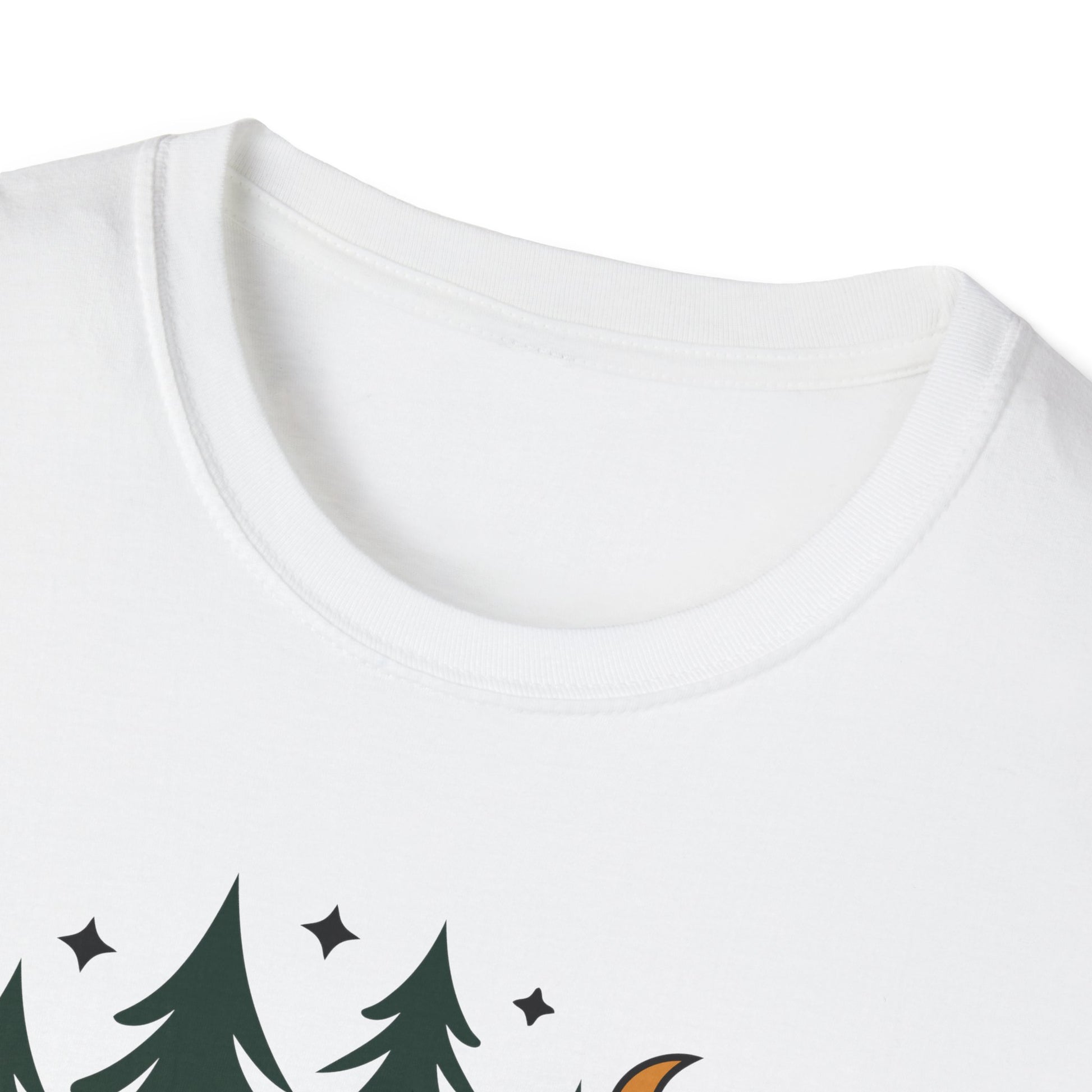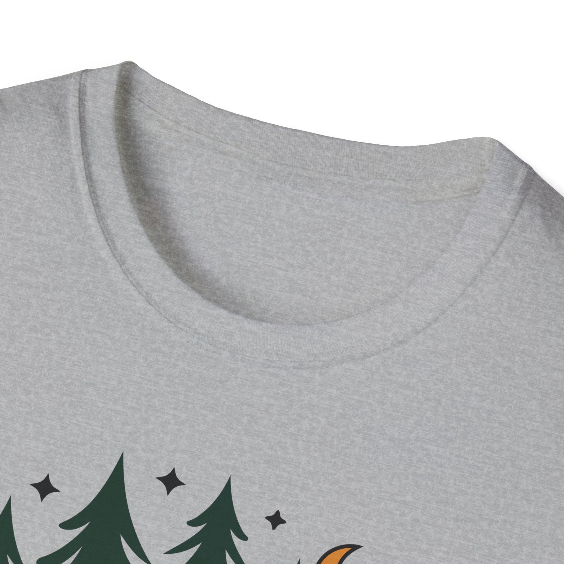 Breathe in the crackle of a campfire and the hush of pine. This soft, lightweight tee carries a warm retro camper tucked beneath tall evergreens, a quiet badge for people who chase sunsets and slow mornings in the woods. Wear it on early drives to the campground, layered under a flannel at dusk, or while unpacking mugs beside your rig. The graphic reads like a tiny story: glowing trailer lights, a small bonfire, and a crescent moon overhead. It’s for those who value small rituals, coffee in a thermos, star maps, and the steady comfort of a familiar campsite.