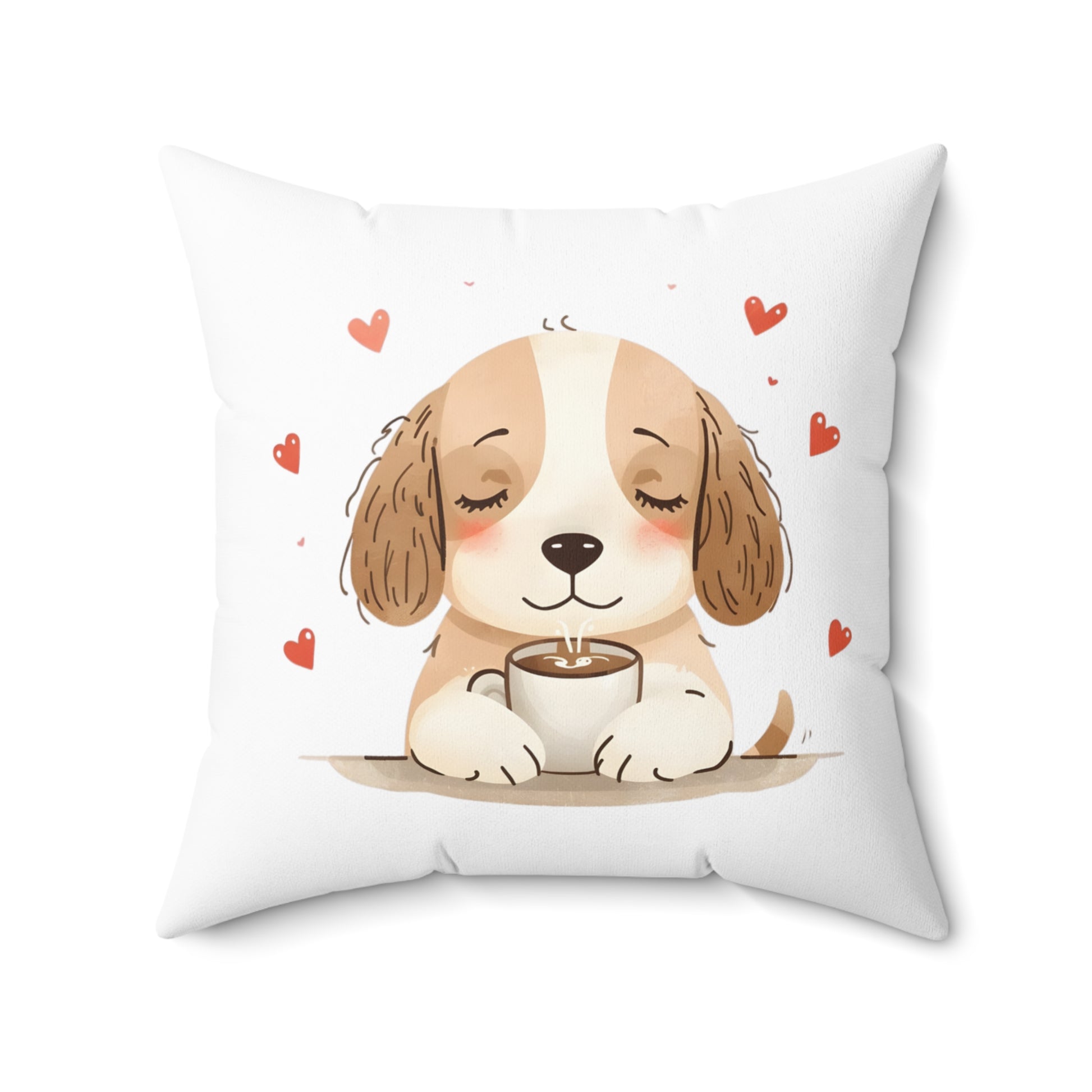 - Love at First Sip Cozy Puppy Throw Pillow – 18x18”, soft, decorative, and comforting