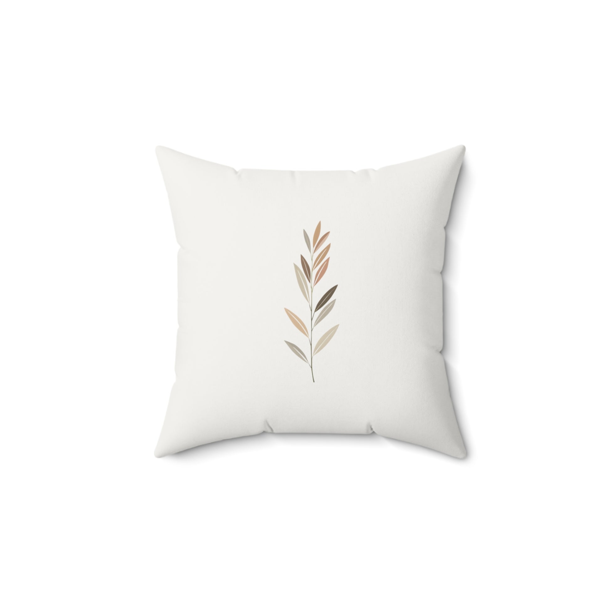Each throw pillow features a minimalist botanical design printed on a soft porcelain-toned background, a warm, off-white shade that offers a gentler alternative to bright white.