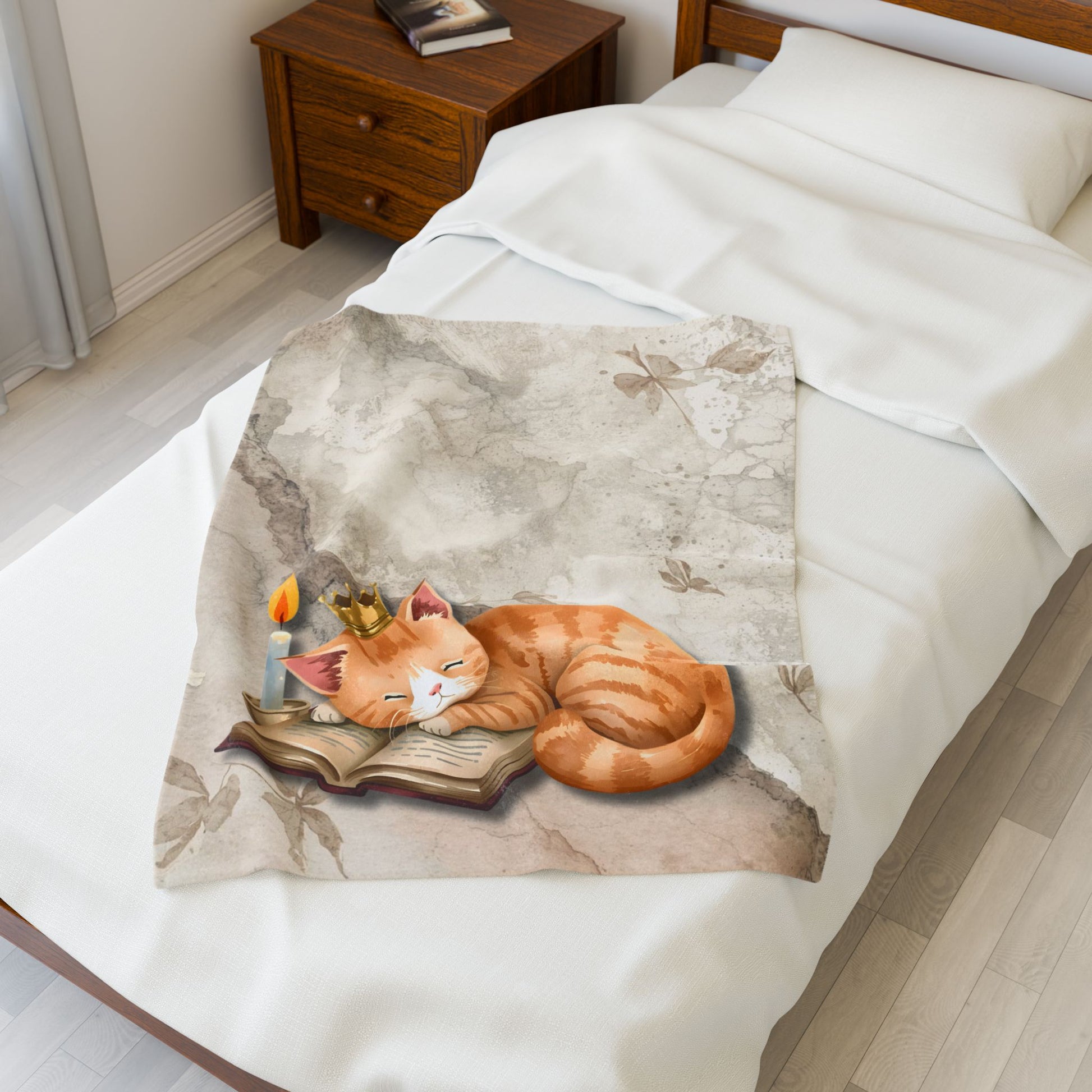 Once Upon a Nap Storybook Sleeping Cat Cozy Velveteen Blanket – Soft Neutral Cat Lover Home Decor Plush Throw