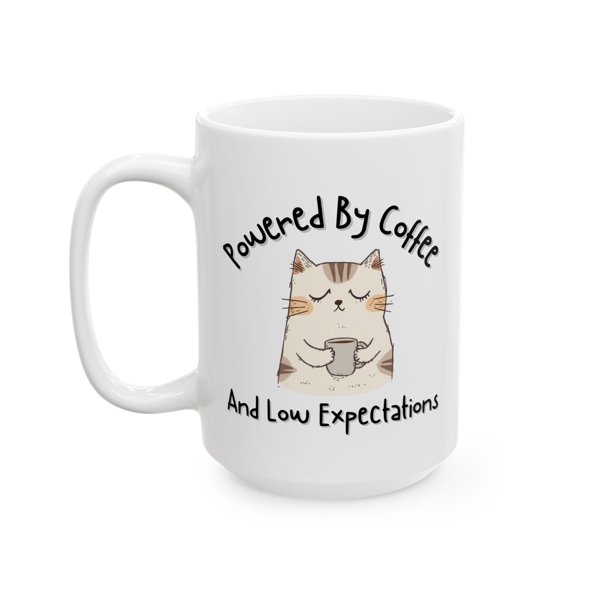 Powered by Coffee and Low Expectations Cute Coffee Mug - Ceramic Coffee Cup (11oz, 15oz)