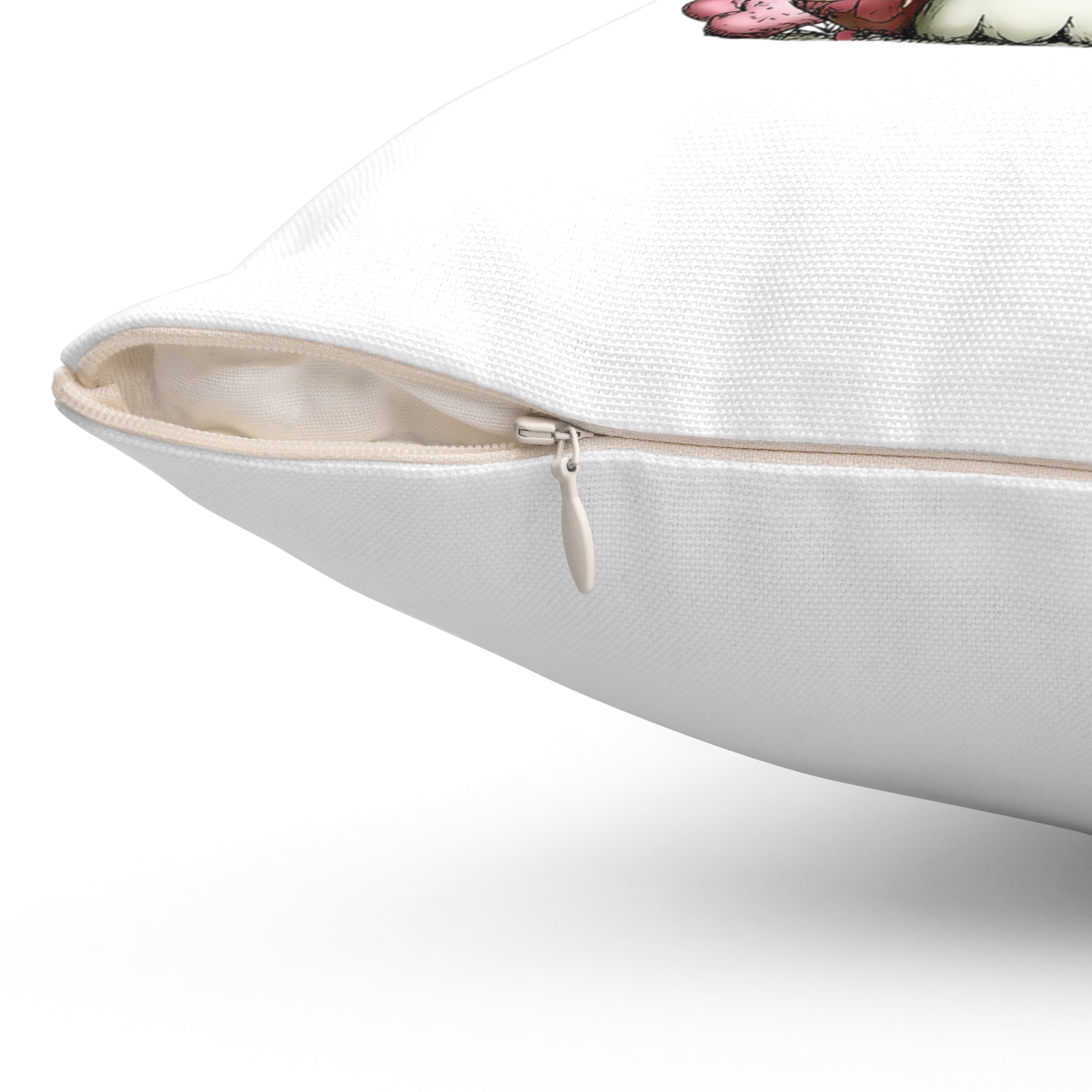 - Concealed beige plastic zipper with metal pull for a clean finish