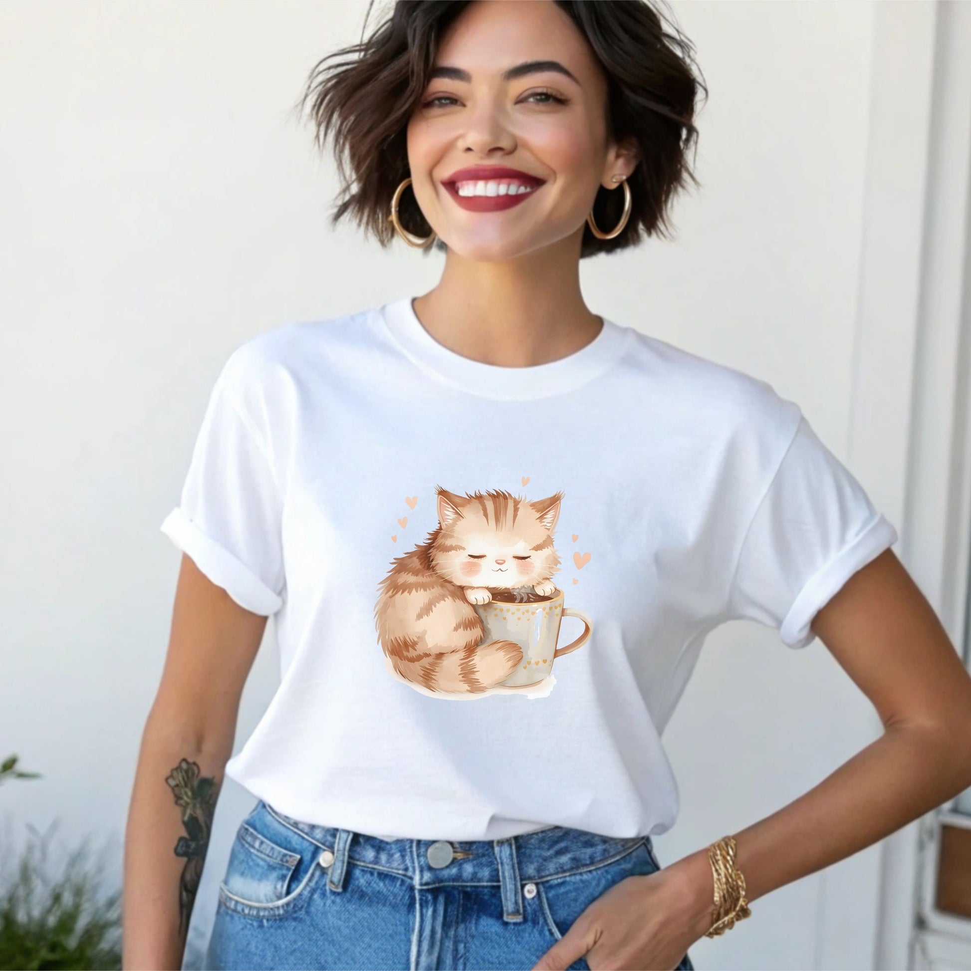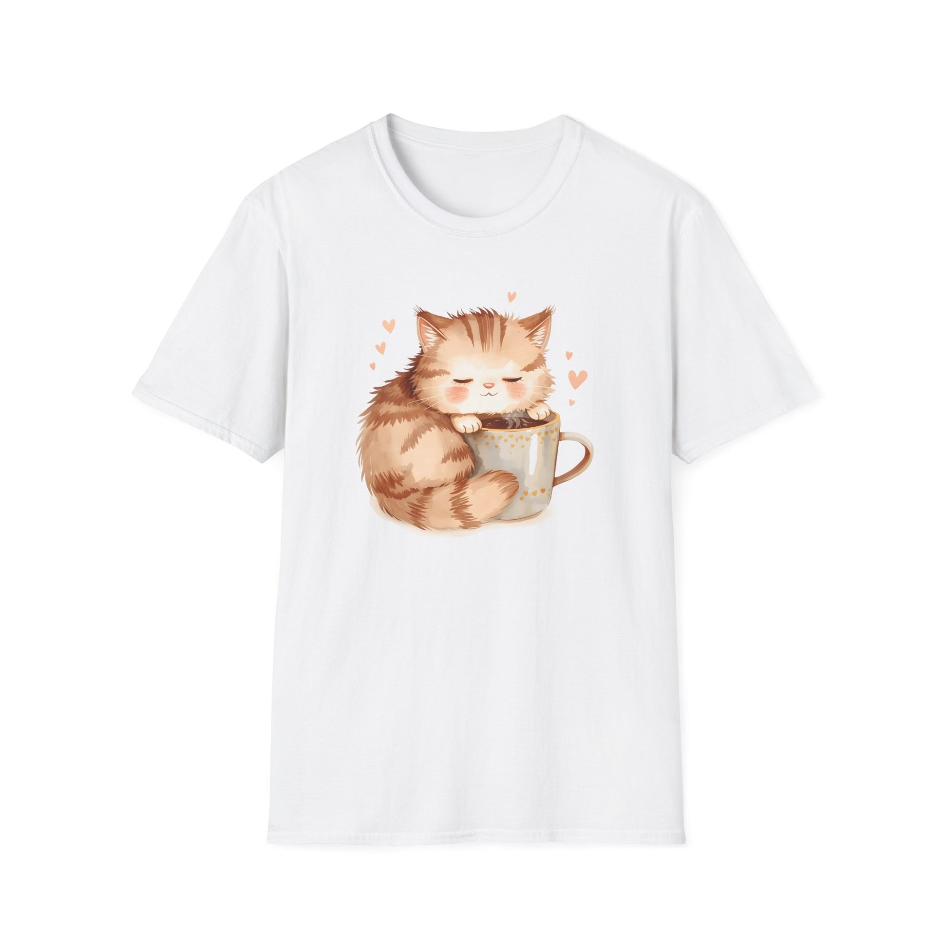 Soft, cozy, and heart-warming. This Sleepy Cat T-shirt features an adorable kitten cuddled up with a warm drink, creating the ultimate comfort piece for relaxed days and cozy nights. This playful Valentine tee brings warmth and personality together in one cozy essential. Featuring a wide-format illustration designed specifically for T-shirts, the artwork sits naturally across the chest for a flattering, high-quality look.