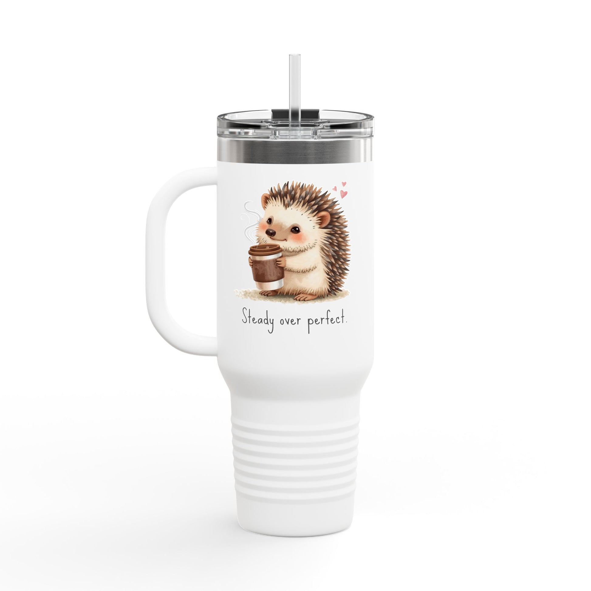 Steady Over Perfect Self Care Motivational Quote - 40oz Insulated Travel Mug