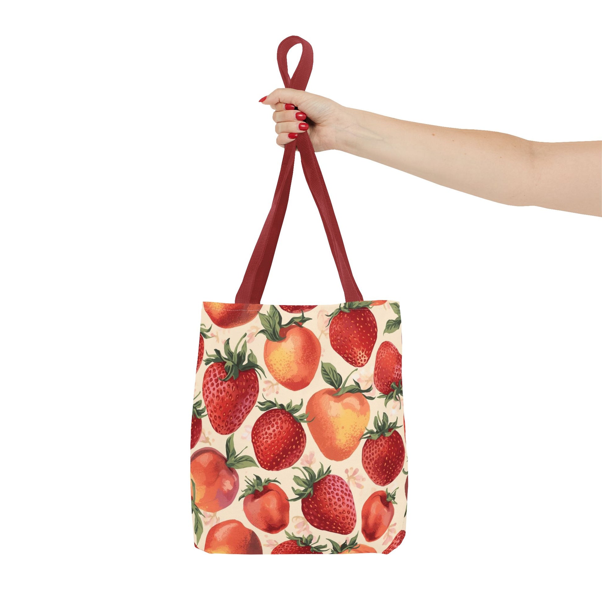 Strawberry Delight Playful Fruit Pattern Cotton Canvas Tote Bag