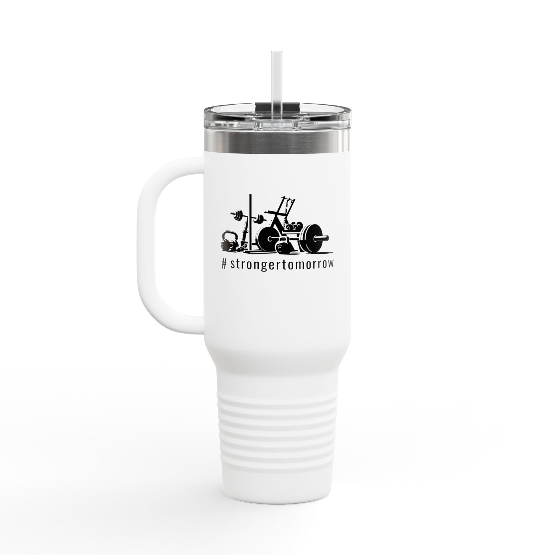 Stronger Tomorrow Fitness Tumbler with Handle Gym Drinkware 40oz Insulated Travel Mug