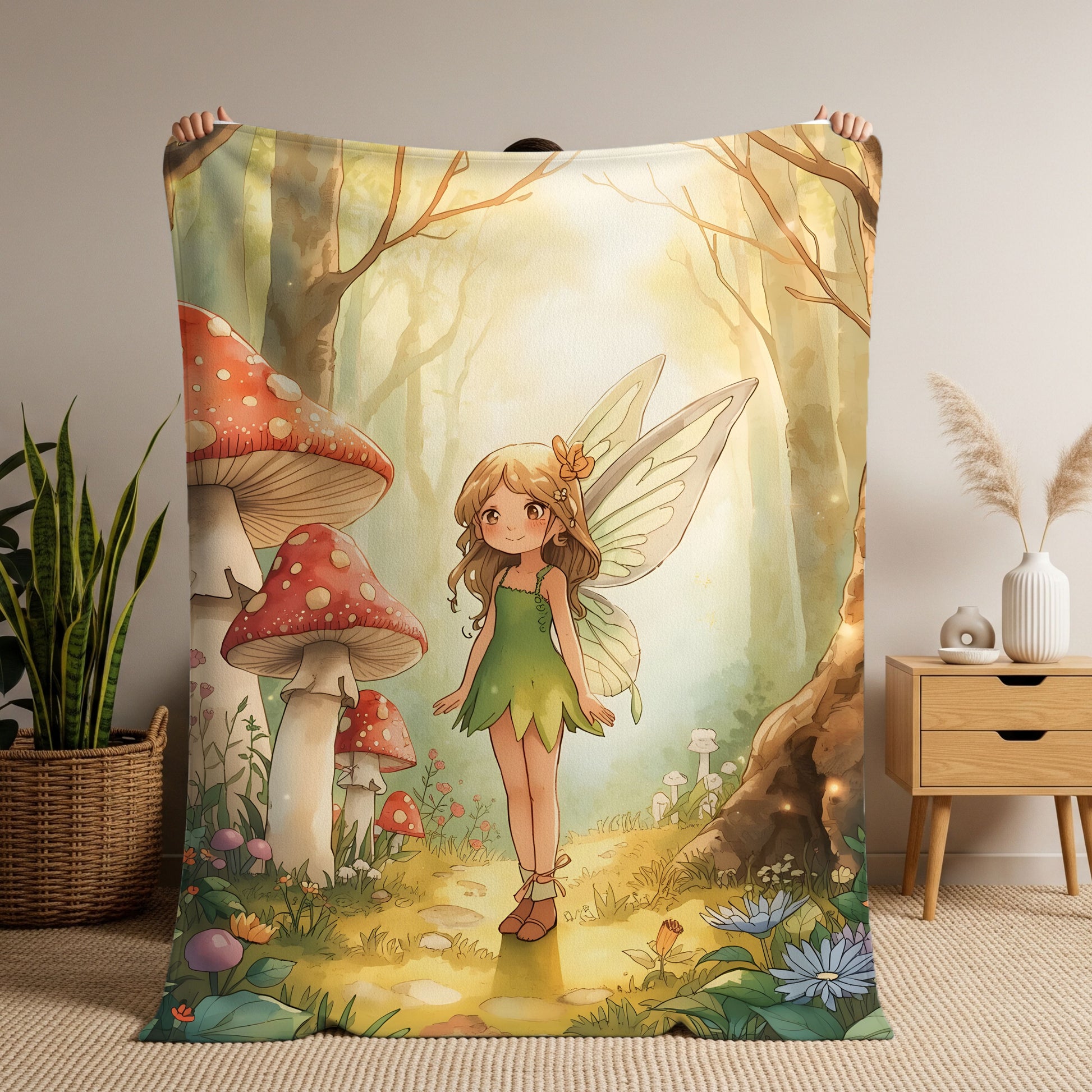This Woodland Fairy blanket features a soft, enchanted forest scene designed to inspire imagination while bringing comfort and calm. With warm light, friendly fairies, and a peaceful forest setting, it’s perfect for bedtime, reading corners, and cozy everyday moments.